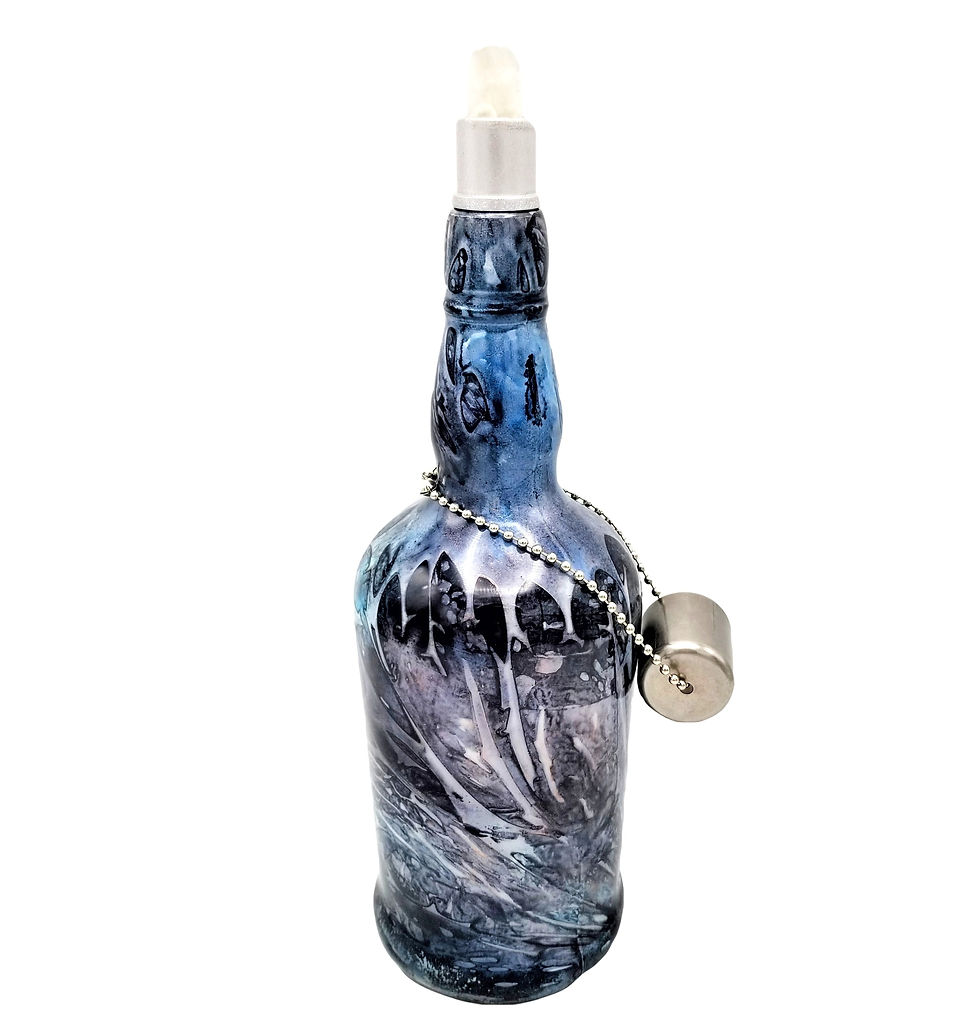 Deep Blue, Black, and Light Blue Alcohol Ink Tiki Torch