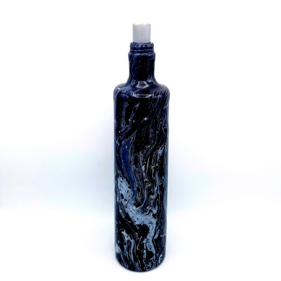 The process of hydro dipping involves dipping the Wine or Liquor bottles into water and paint filament to coat the bottle.